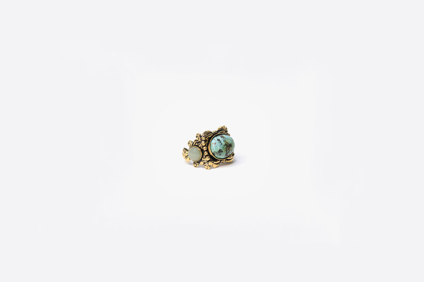 Bague en laiton dorée à l'or fin 24 carats et cabochons en Jaspe africain et Aventurine
